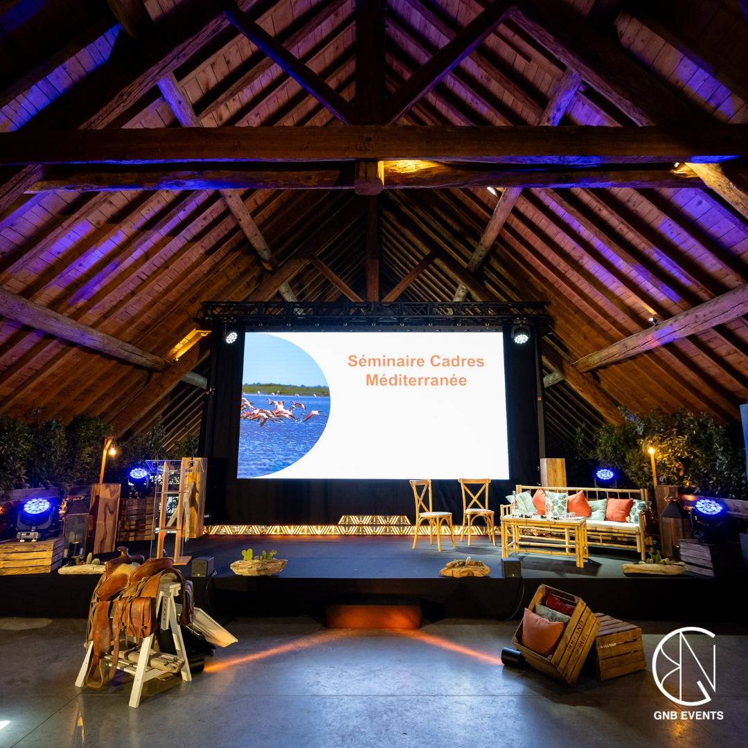 Nous vous proposons un lieu atypique et original, où chaque moment devient une occasion de célébrer l’esprit de la Camargue. Une ancienne bergerie, rénovée avec soin, vous offrira l’espace idéal pour votre réunion plénière. Ce lieu chargé d’histoire et de caractère constitue un cadre parfait pour allier travail et détente. Notre régie technique, gérée par GNB Technique, assure une mise en lumière subtile et une sonorisation de qualité pour que chaque présentation soit claire, captivante et percutante.